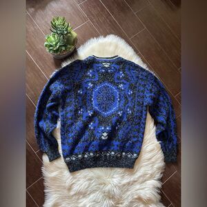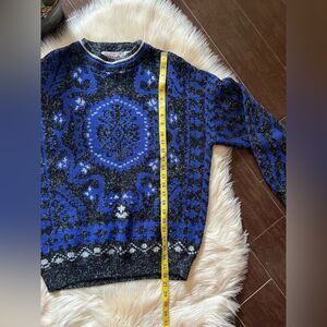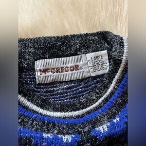 Mcgregor Blue/black/grey fuzzy Patterned Sweater Sz Large