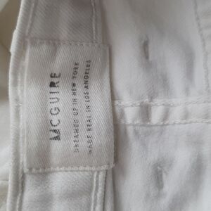 Features: button and fly closure, 5 pocket styling, raw hem, distressed