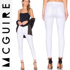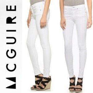 Mcguire Newton Skinny Jeans Raw Hem White Moon Size 27 Stretch Denim
