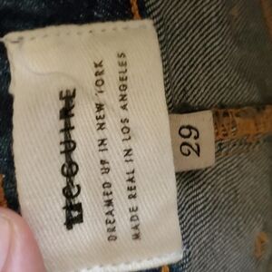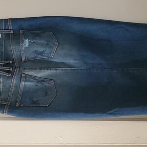 Indulge in denim chic with the McGuire Distressed Denim Skirt in Size 29.