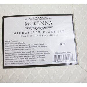 Keep your table classy and your spills sassy. These placemats repel liquids faster than your guests can spill them, keeping cleanup simple. Includes set of 3 McKenna mats plus one other unbranded cream colored mat with a different pattern.