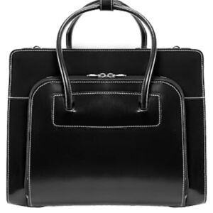 Mcklein Lake Forest Ladies Leather Laptop Brief Case Removable - Black bag
