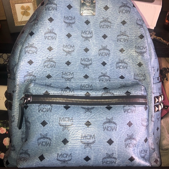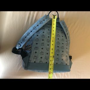 Large MCM backpack, Upgraded in Visetos with a luxurious faux nappa leather lining, the structured design is adorned with metal hardware studs. It has a few scratches on bottom of backpack.(please see pictures). No dust bag or box