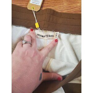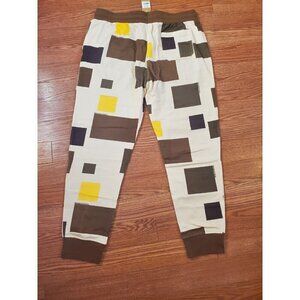 These sweatpants are new with tags. MSRP = $164. The pants are a cream color with army green, black, and yellow squares.