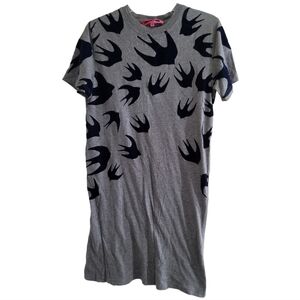Mcq Alexander Mcqueen Swallow Casual Dress In Grey. 100% Cotton t-shirt dress with velvet Swallow birds resting on the top of dress. Short sleeves.