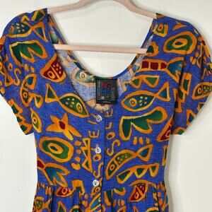 Md 1990 Y2K VTG Big Hed Designs Abstract Fish Dress Maximalist Dopamine Eclectic