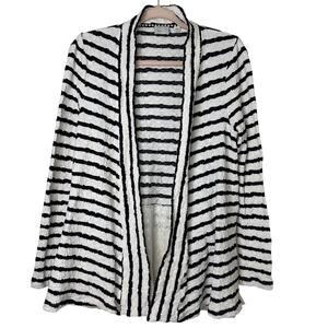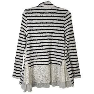 Md Anthropologie Striped Cardigan Black Cream Chiffon Lace Boho Romantic Preppy