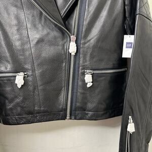 Md NWT GAP Black Quilted Leather Moto Jacket Biker Jacket Grunge Edgy Punk Goth