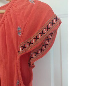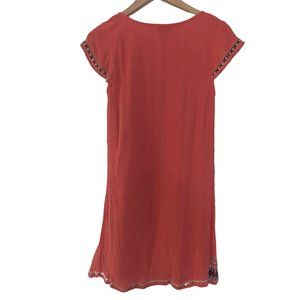 Md'M | Women's Short Coral Pink Boho Dress With Embroidery | Size 4