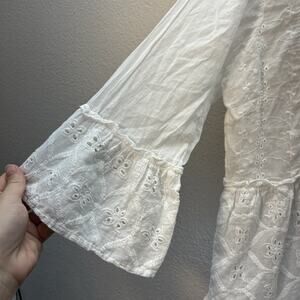 Me 2 Magic Anthropologie Boho Cottagecore Mini Tunic 3/4 Sleeve Tiered Dress L 100% cotton resort wear hippie festival country western Cowgirl beach coastal