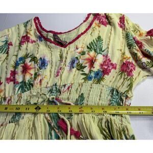 Me 2 Magic Anthropologie Womens Sz XL Yellow Maxi Dress Floral Tropical Boho