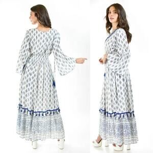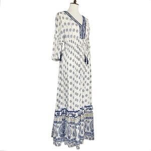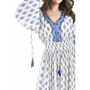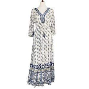 Me 2 Magic Women's White & Blue Floral V-Neck Tassels Sequin Maxi Dress Size S