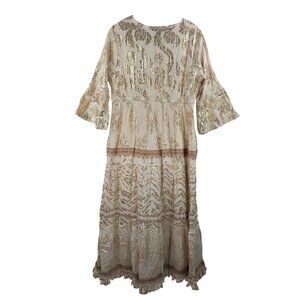 Me 2 Magic boho gold trim crochet embroidered maxi dress Goddess sz 2X