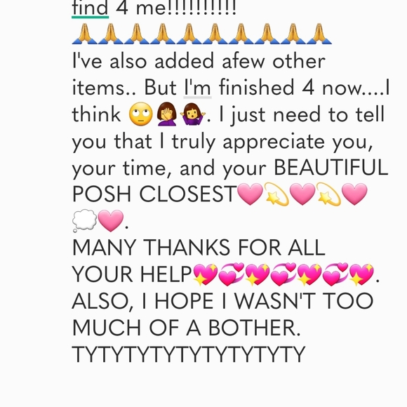Attenion Poshmark buyers and sellers. I'm frustrated as HECK!!!!!! For the past hour or so, I've been trying & trying and TRYING to message a Poshmark Seller about my bundle being completed. This Seller helped me tremendously!!!!!! Then, as I go to post it, a message from Poshmark pops up with their own message, stating that I can not "Trade" here on Poshmark. I don't, nor have I ever, tried to!!!!!! So, hopefully these two pictures here, that I wS trying to send the Seller will post.