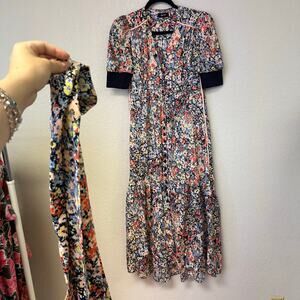 Me + Em Hand-Painted Floral Midi Tea Dress Size 2