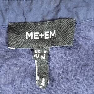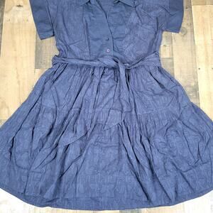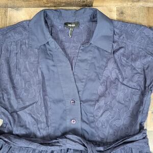 Me + Em Navy Short Sleeve Midi Textured Lace Flowy Collared Pullover Dress w/ Pockets & Belt Sz 4. Measurements are in the photos. Good pre-owned condition (see all pictures), smoke free home, ships quickly!