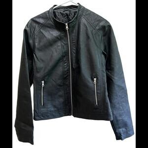 Me Jane Black Faux Leather Jacket Biker Style Sz Large