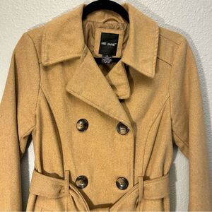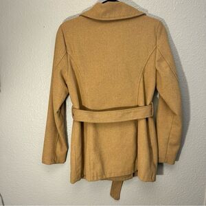 Me Jane Camel Pea Coat Wool Blend Size Medium With Belt