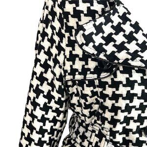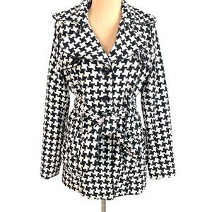Me Jane Houndstooth Trench Coat Jacket Size S Wool Blend Black White