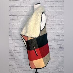 Me Jane Plaid wool blend Sherpa Vest size medium