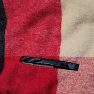 This 'Me Jane' wool blend faux fur vest is amazing. I'm sad it's a small. It's an open, drapery style with 2 pockets w/ faux leather trim. The faux fur or sherpa is so soft and fuzzy.