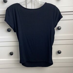 Me To We Women’s Black Short Sleeved Crop Top with Criss Cross V Neck - Size Med