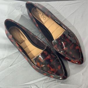 Me Too Aiora Tortoiseshell Patent Loafers Pointed Toe Flats 6W Mobwife Office