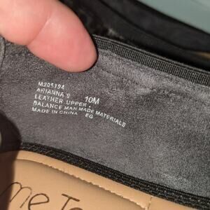Dyed black, tan and grey blue . Pointed toe , rubber soles , comfort foot bed, stretch band around top of shoe for perfect fit . Calf hair has natural irregularities see pics . Has sticker residue in sole