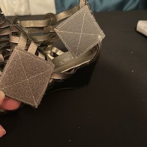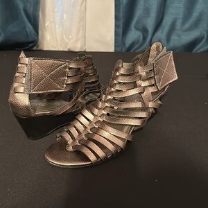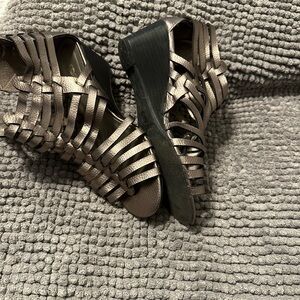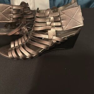 Elevate your style with these chic brown/bronze wedge sandals from Me Too, featuring a sophisticated strappy design. The comfortable wedge heel provides both height and stability, making them perfect for any occasion. Crafted with attention to detail, these sandals are a must-have addition to your footwear collection.