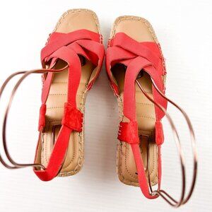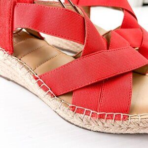 Me Too Casey Mini-Wedge Textile Criss Cross Open Toe Red Sandal Womens Size 8M