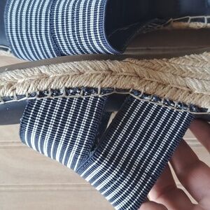 Me Too Cayman Navy Striped Wedge Heel Espadrille Sandals – Women’s Size 8.