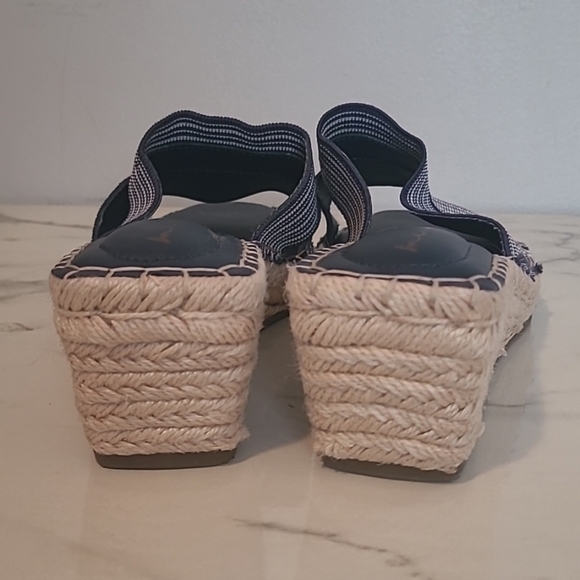 Me Too Cayman Navy Striped Wedge Slip-on Sandals Stretch Bands Wmns 9 Coastal