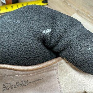 Elevate your shoe game with these stylish Me Too Cori metallic bronze pointy toe flats. Designed for women, these slip-on loafers feature a faux leather upper material with a pointed toe shape and a synthetic lining material. The closure is easy to use and the shoes are available in a US size 6.5. The bronze color and metal theme of these flats make them a versatile addition to any wardrobe. Perfect for both casual and formal occasions, these Me Too flats are a must-have for any fashion-forward woman.