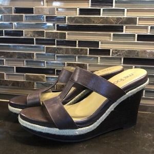 Me Too Jacki Brown leather wedge sandals Women’s Size 7