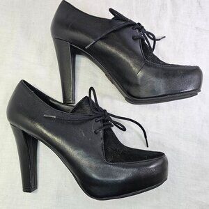 Me Too Lynessa Genuine Leather Chunky Platform Oxford Bootie Pumps 8 Black