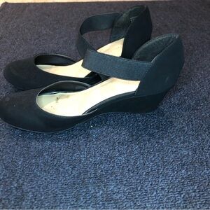 Me Too MCOKIE Black Strappy Wedge Pumps. There is some scuffs on the tips, as shown in photos above. Minimal signs of wear on the bottoms, as shown in photos above. Feel free to make a reasonable offer through the offer button!