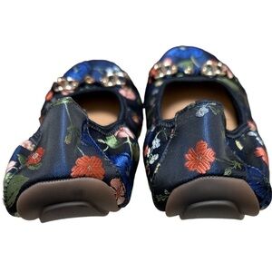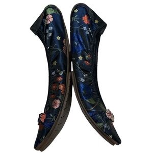 Me Too Olympia Ballet Flat Satin Floral w/ Metal Bit Trim Cushioned Driving Sole