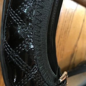 Cute Me Too black patent leather shoes with nice quilted pattern with buckle. Very comfortable with a small 1 inch wedge heal. Only worn a couple times. In great condition. Size 6