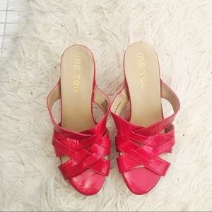 Me Too Red Leather Strappy Sandal Wedges