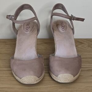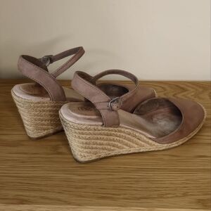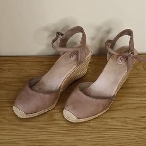 Me Too Women’s Bethany Leather Espadrille Taupe Wedge Sandal Size 9.5