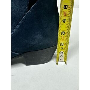 Me Too Zena Navy Blue Suede Leather Casual Heeled Ankle Booties Woman’s Sz 9W