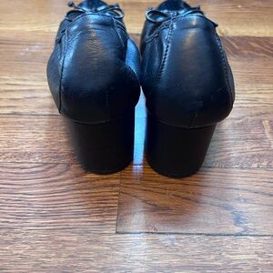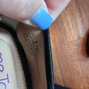 Black leather with patent leather front. Very little wear. Smoke and pet free home.