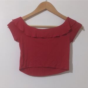 excellent pre-owned condition size small ruffle detail tie front off shoulder E