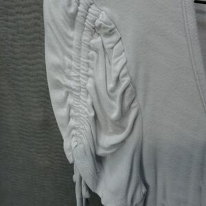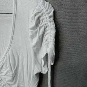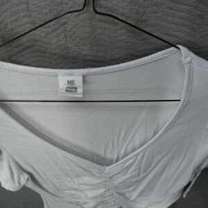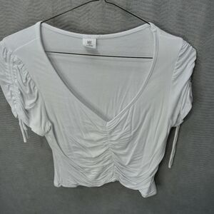 Me to We women's white gathered stretch rayon/spandex crop top sz L. Pit-p 15". Length 17". 18pm