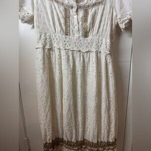 Me2Magic 100% Cotton Floral Eyelet Lace Embroidered Boho Hippie Maxi Dress Large