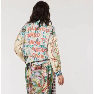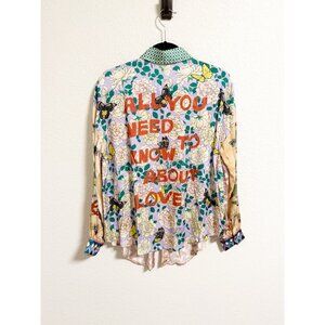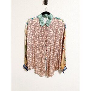 Me369 Womens Sofia Tie Front L'amour Blouse Button Up Long Sleeve Mixed Print XS