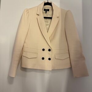Me+Em Cotton Herringbone Fitted Short Blazer In Ecru Sz 8 NWOT