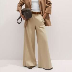 Me+Em high waisted wide leg trousers, light stone khaki. Women's size 12 short.