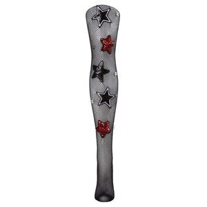Designed in sheer black fishnet w/ red & black sparkly star embellishments, they add instant rock‑n‑roll glamour to any outfit.