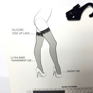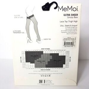 Beautiful lace top thigh high by MeMoi features a sheer toe with ultra bare transparent leg.